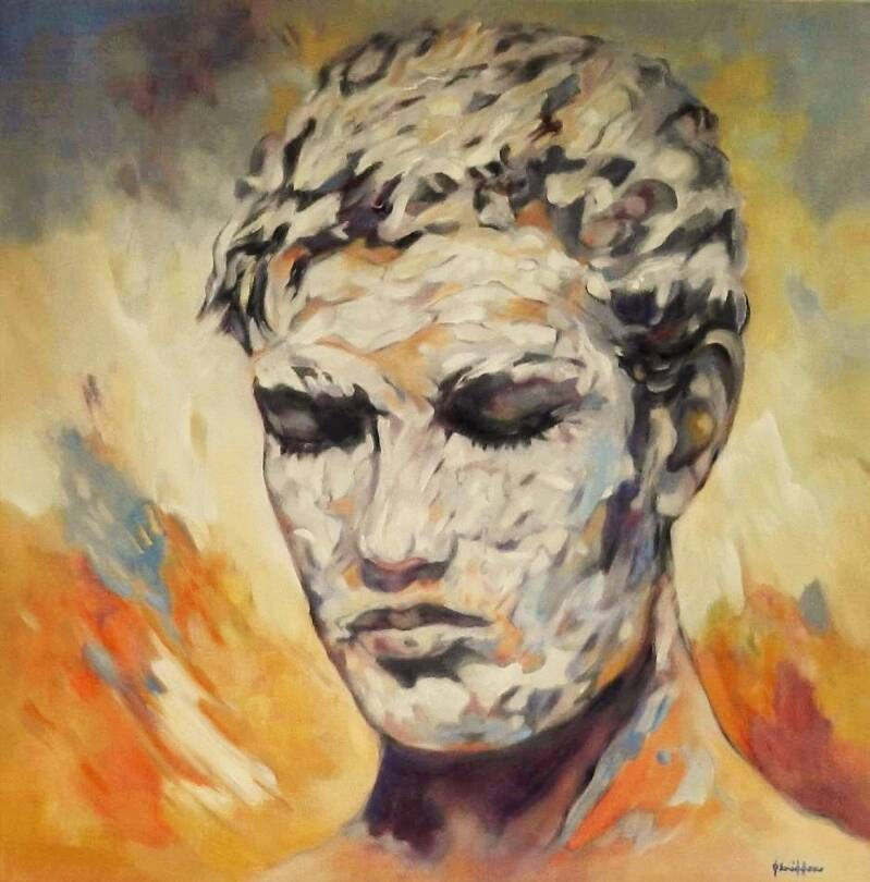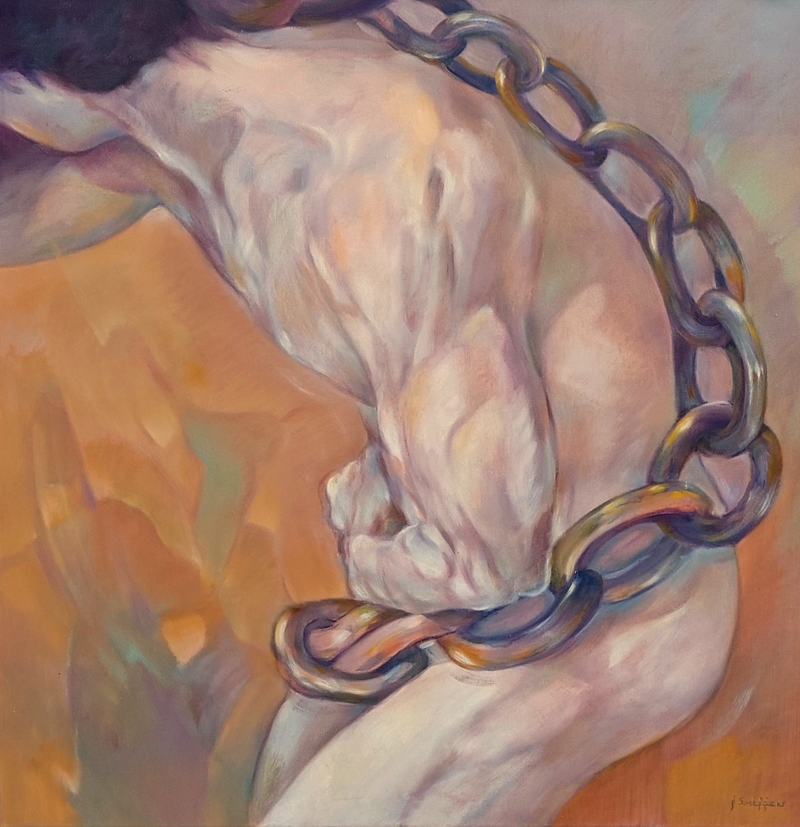 Geketend aan het bestaan - Olieverf op doek 80 x 80 cm -