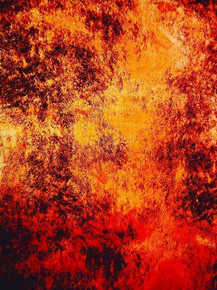 In dit schilderij ontvouwt zich een vurige stroom die lijkt te ontsnappen uit een wereld achter de onze. Warme en koele kleuren verweven zich tot een ritueel van licht, alsof onzichtbare krachten zich even tonen in een dans van gloed en beweging. Het werk ademt een geheimzinnige energie — een poort naar een rijk dat slechts in flitsen voelbaar wordt.